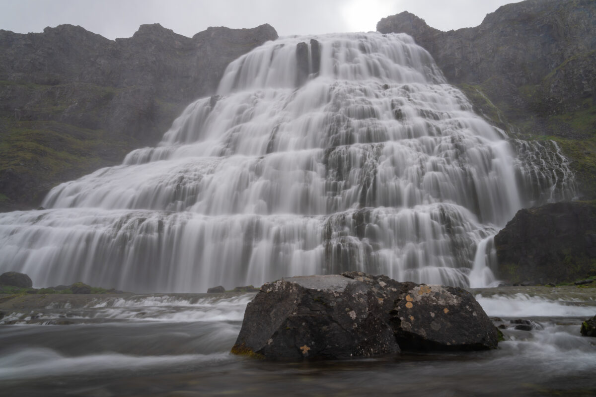 Es ging zum Dynjandi, dem quasi donnernden Wasserfall. Dynjandi heißt auch übersetzt „der Donnernde“. Wir sind ganz normal aufgestanden und haben gefrühstückt. Das Schöne in Island im Sommer ist ja, dass es quasi Tag und Nacht hell ist. Man muss sich überhaupt nicht beeilen, weil es dunkel werden könnte. Man kann einfach seinem eigenen Rhythmus folgen – und mittlerweile waren wir auch wirklich angekommen und entspannt.