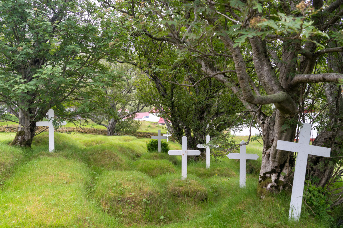 Wir stehen an diesem Morgen früh auf. Das Wetter ist grau, die Wolken hängen tief, und es ist deutlich nebliger als an den Tagen zuvor. Bevor es richtig losgeht, fahren wir noch zu der kleinen Hofskirche in der Nähe. Wir schauen uns dort in Ruhe um, gehen über das Gelände und machen Fotos. Durch den Nebel wirkt alles noch einmal ruhiger und abgeschiedener als ohnehin schon.