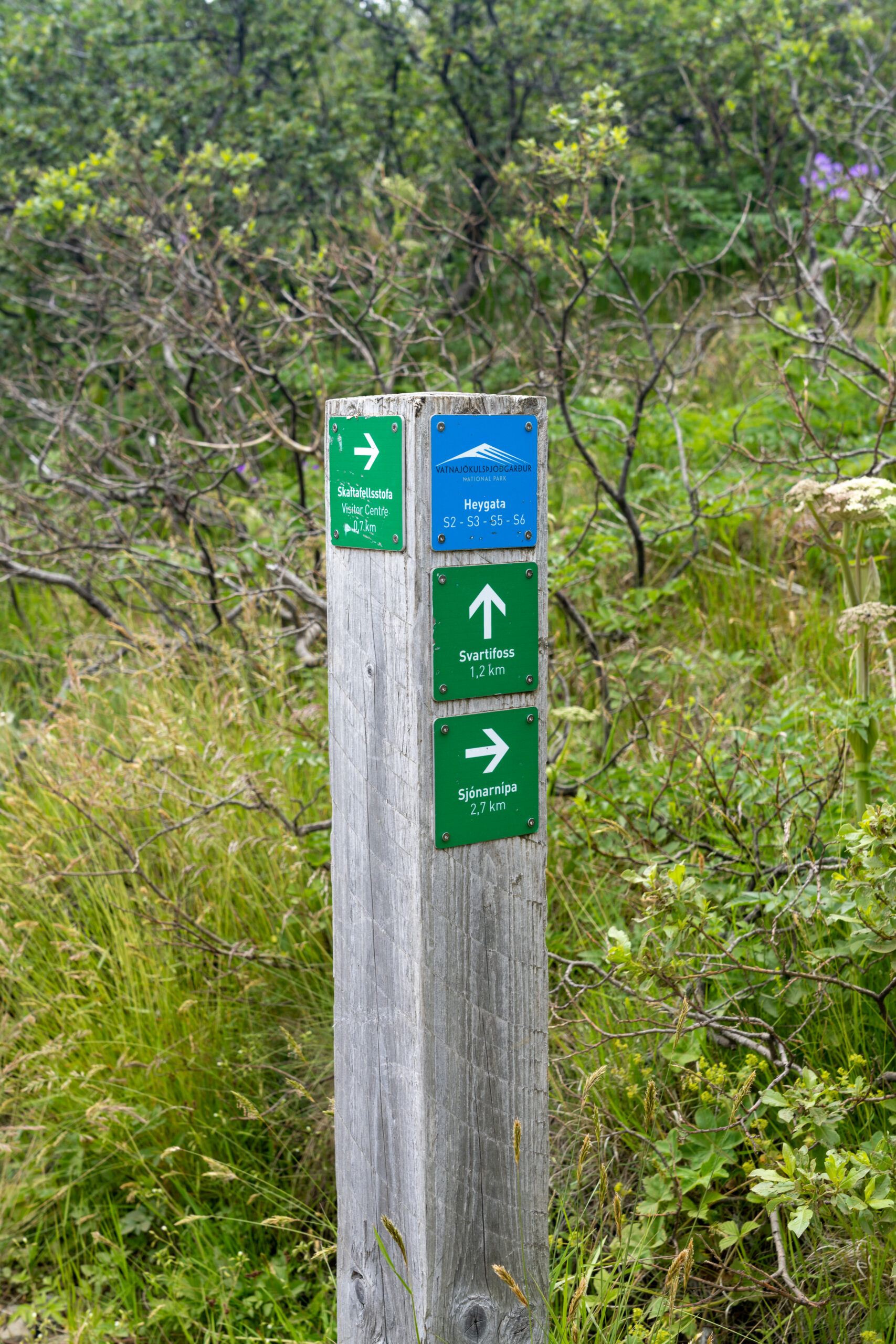 Anschließend geht es weiter in Richtung Svartifoss, also der gleiche Parkplatz und Nationalpark wie gestern. Auf dem Schild steht, dass es „nur“ 1,2km sind.