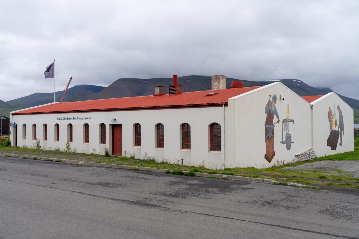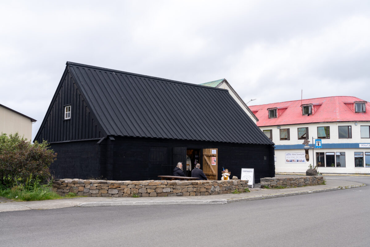 Nach ausgiebigem Herumlaufen und Fotografieren aus allen möglichen Ecken und Enden ging es weiter Richtung Þingeyri. Wir schlenderten dort ein bisschen durch den Ort, schauten in der Touristeninformation und in eine kleine Ausstellung. So richtig umgehauen hat uns das alles nicht – vielleicht lag es auch am Wetter. Wir fotografierten eher lustlos Vorgärten und alte Reifen, die zu Kunstobjekten umfunktioniert worden waren.